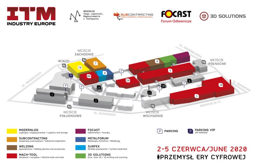 Z przyjemnością prezentujemy aktualną mapę ekspozycji bloku targów przemysłowych, które odbędą się 2-5 czerwca 2020 r. ITM Industry Europe towarzyszą targi Logistyki, Magazynowania i Transportu Modernlog, Subcontracting, Forum Odlewnicze Focast i 3D Solutions - targi druku i skanu 3D.