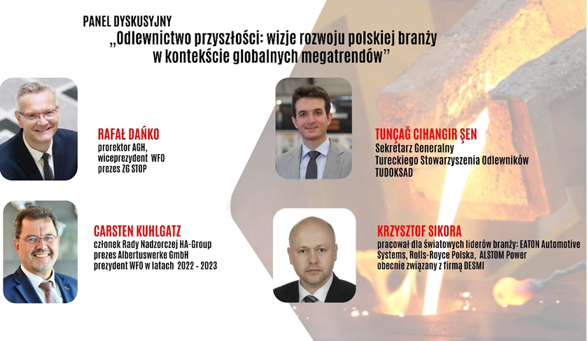 Spotkanie pozwoli poznać kluczowe trendy kształtujące przyszłość odlewnictwa, dowiedzieć się, jak polska branża może sprostać globalnym wyzwaniom, oraz wysłuchać opinii uznanych ekspertów i liderów sektora. Panel będzie również inspiracją do poszukiwania innowacyjnych rozwiązań, wymiany doświadczeń i nawiązania wartościowych kontaktów biznesowych. W dyskusji podjęte zostaną tematy roli odlewnictwa jako dostawcy komponentów dla kluczowych sektorów przemysłu, takich jak np. motoryzacja, obronność czy energetyka. Pojawi się również temat transformacji energetycznej, wyzwań dla branży w tym zakresie oraz potrzeby wprowadzania rozwiązań produkcyjnych bardziej przyjaznych dla środowiska.